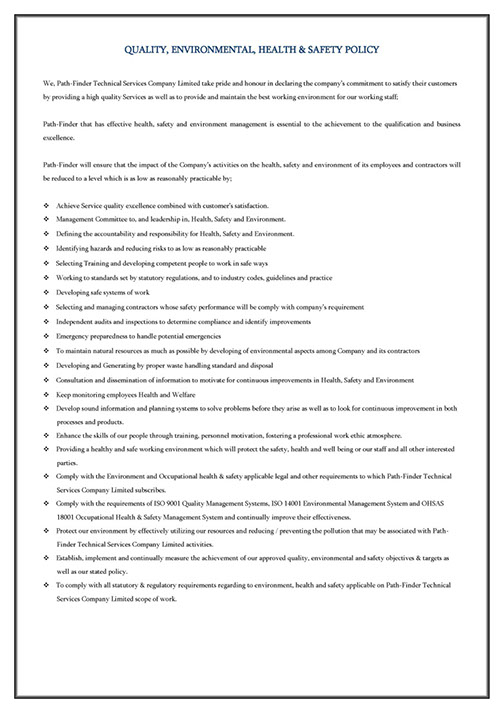 Path-Finder that has effective health, safety and environment management is essential to the achievement to the qualification and business excellence.